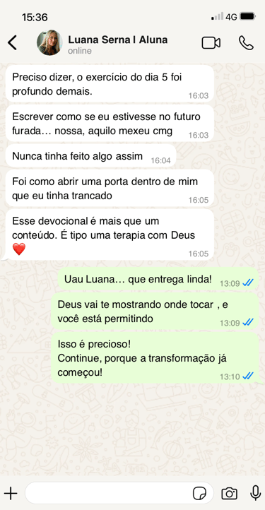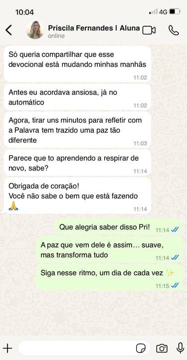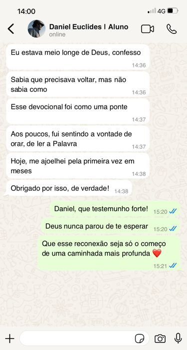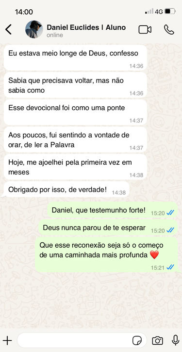 Você terá acesso a um versículo inspirador + uma reflexão terapêutica + um exercício.