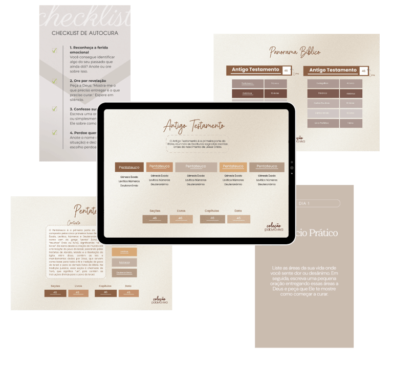 A Coleção Palavra Viva é uma área de membros onde você terá acesso a resumos visuais da Bíblia e guia de direcionamento nos estudos, preparando você para explorar e compreender a palavra de Deus em sua totalidade — simplificando a riqueza dos ensinamentos de cada livro sagrado.