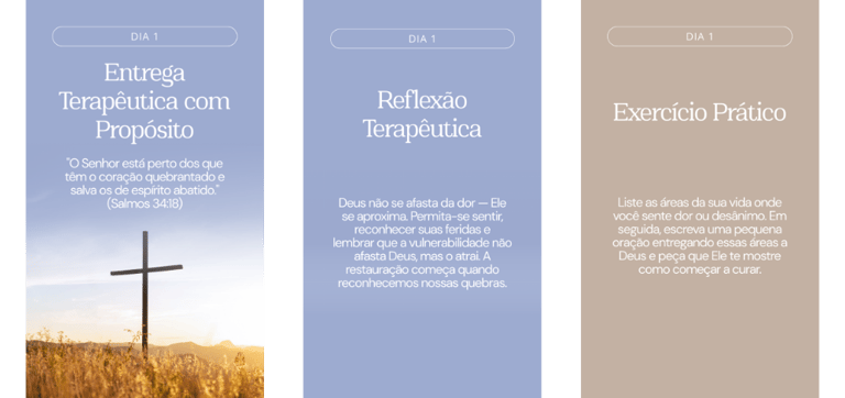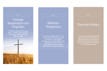 Você terá acesso a um versículo inspirador + uma reflexão terapêutica + um exercício.